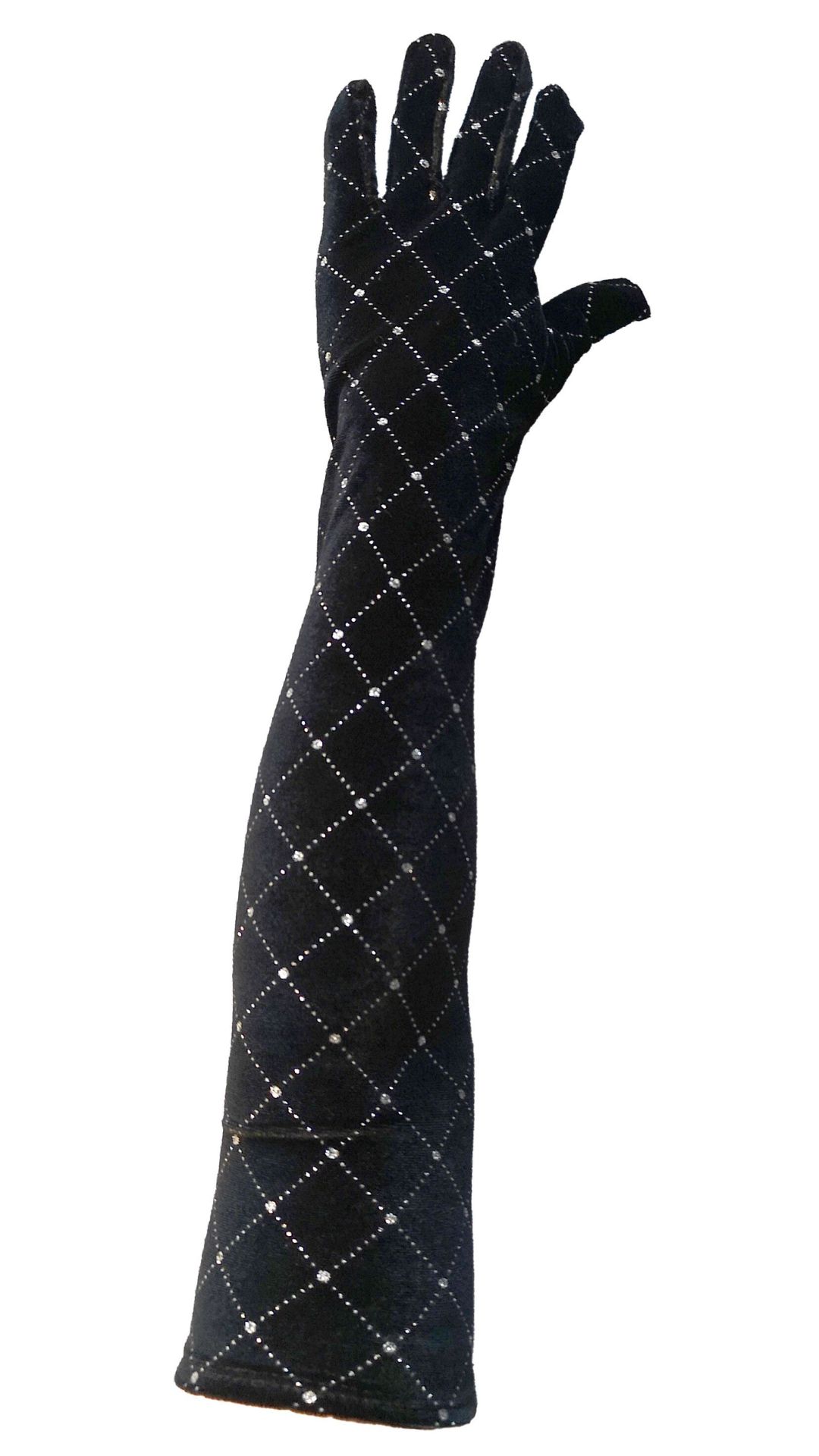 Handschuhe Samt schwarz mit Glitzersteinen